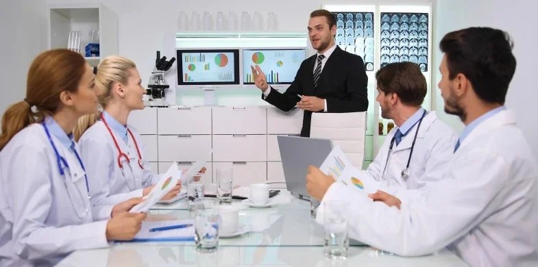 Enlace estratégico entre fabricantes y compradores mayoristas, facilitando negociaciones, logística y condiciones comerciales ventajosas en el sector médico.